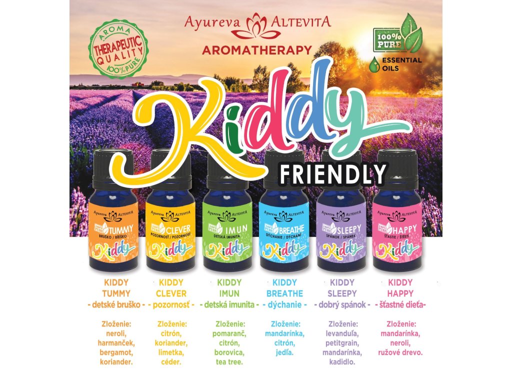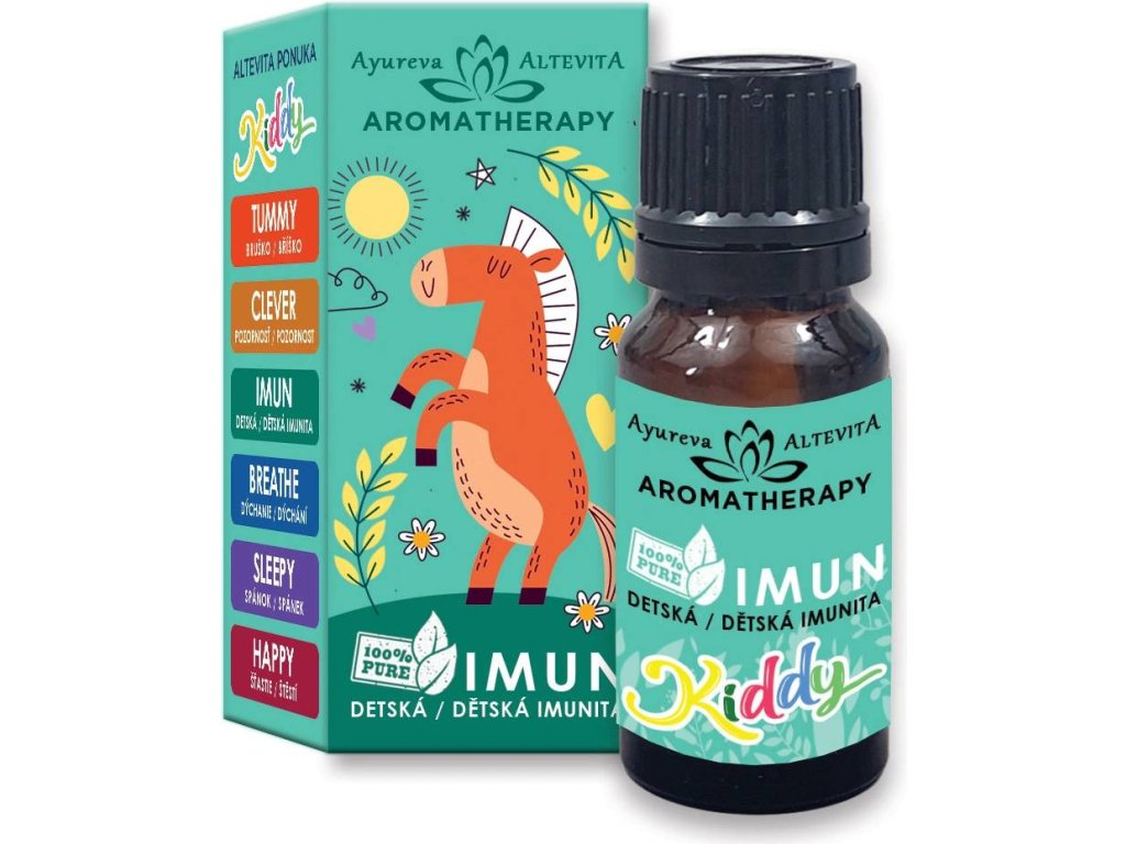 Kiddy Imun je zmesou na posilnenie imunitného systému vhodný ako prevencia alebo počas ochorenia. Je vhodná na jesenné a zimné mesiace, kedy sú deti v rámci detského kolektívu často náchylnejšie na ochorenia či už vírusového alebo bakteriálneho charakteru. Pomaranč a citrón vďaka príjemnej citrusovej vôni povznáša, dodáva energiu, zmierňuje napätie. Borovica podporuje regeneráciu organizmu. Tea tree (čajovník) pomáha chrániť detský organizmus pred vírusmi a baktériami.