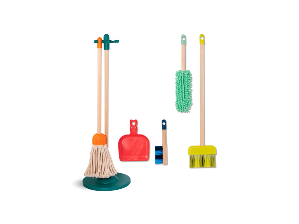 So 6-dielnou sadou na upratovanie v krásnom drevenom prevedení vám deti budú nadšene pomáhať s upratovaním vášho domova. Drevené nástroje sú realistické, odolné a ľahko sa držia malými detskými ručičkami.