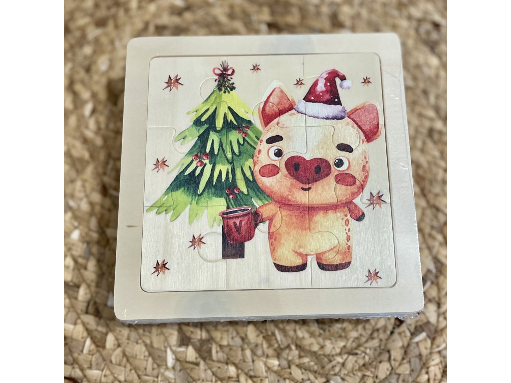 DREVENÉ PUZZLE VIANOČNÉ PRASIATKO