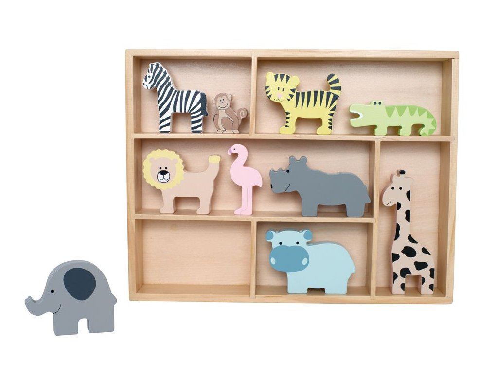 Krásna a užitočná polička so safari zvieratkami oživí každú detskú izbičku.