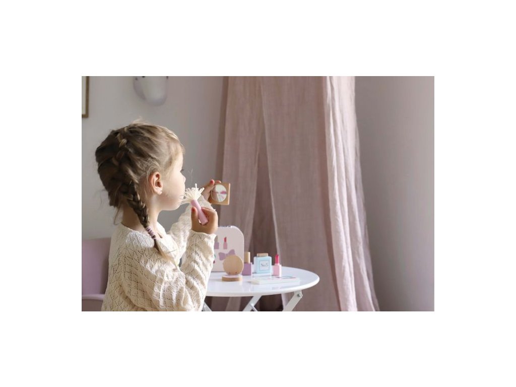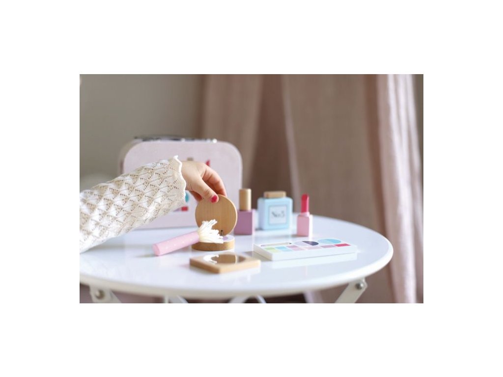 S roztomilým Make up kufríkom môže byť každé dievčatko pekné kedykoľvek. Produkty, ktoré sa nachádzajú v Make up kufríku sú vyrobené z dreva, takže sa nemôžete rozmazať. Všetky produkty sú zabalené v ružovom kufríku, takže si môžete jednoducho vziať svoj make up so sebou, keď idete navštíviť svoje kamarátky.
