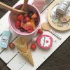 Sada obsahuje: plátok ananásu, banán, jahodu, kiwi, melón, hrozno, pomaranč, šľahačku, jahodový džem a príbor.