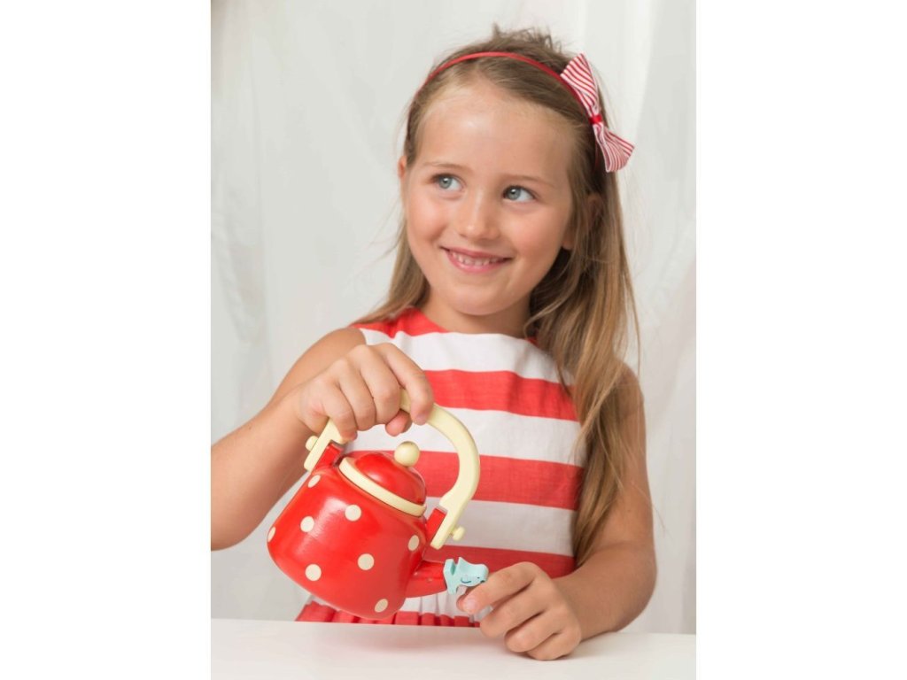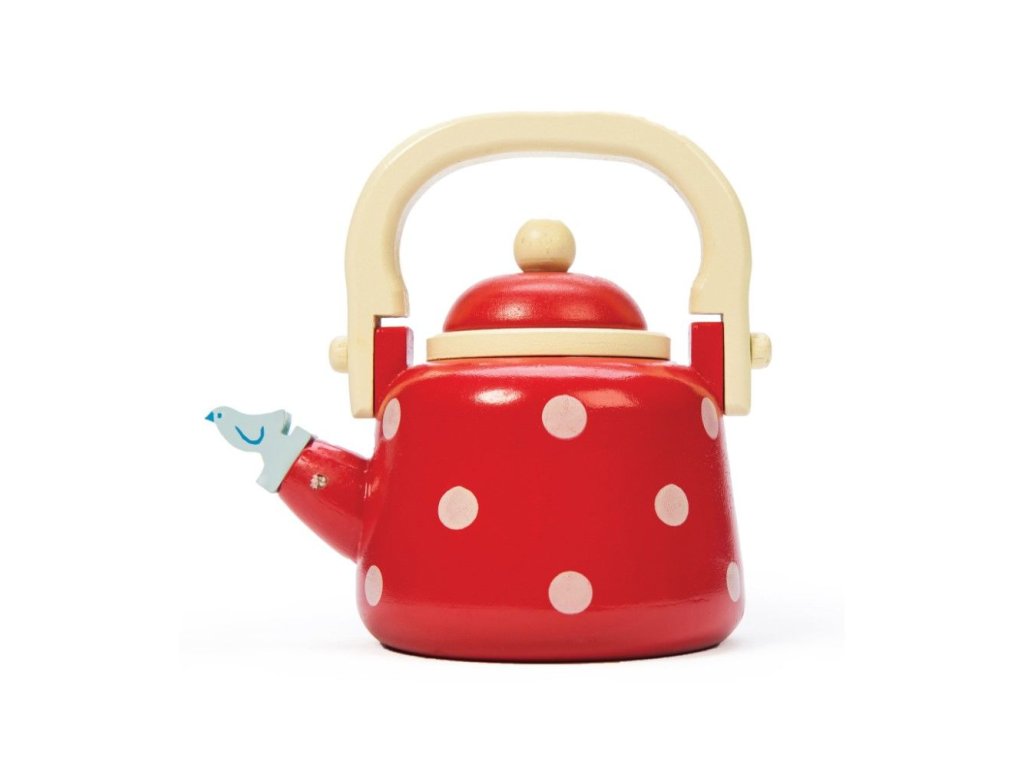 Drevená kanvica s milými bodkami a odnímateľným vekom.