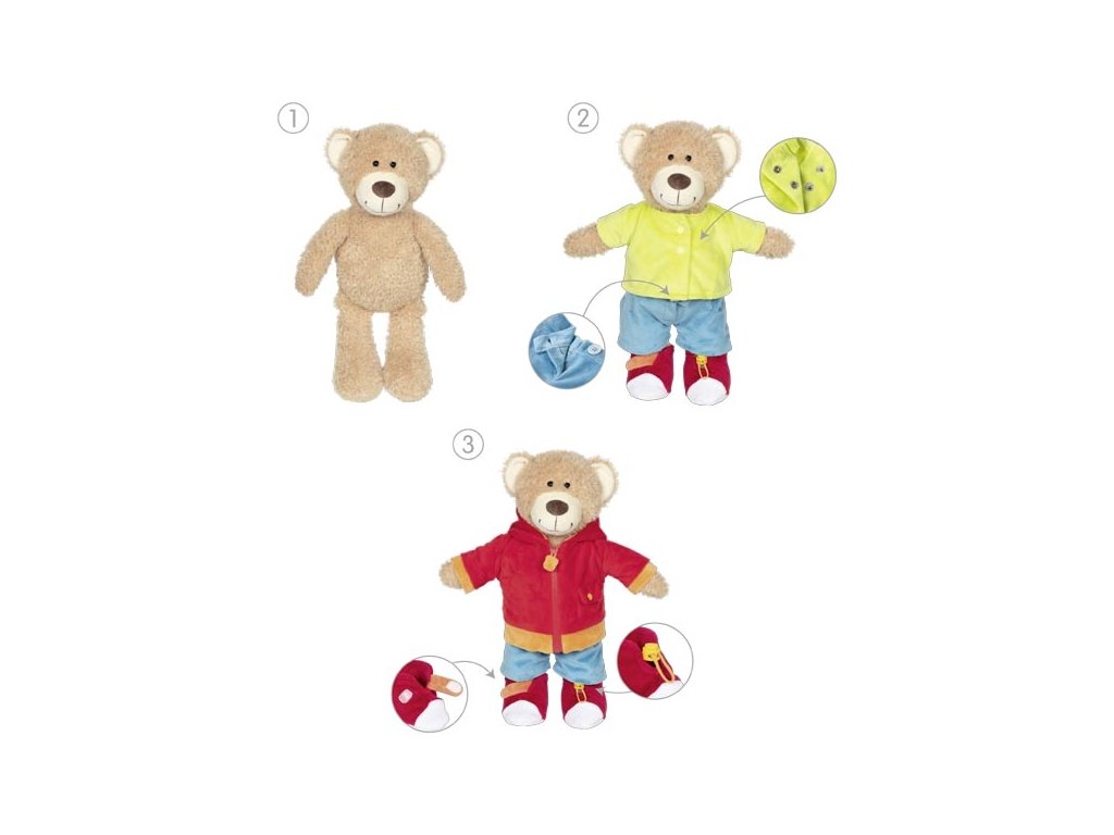Macko na prezliekanie, ktorý deti učí hravou formou samostatnosti, trpezlivosti a jemnej motorike. Každý gombík a zips je malý krok k veľkým zručnostiam.