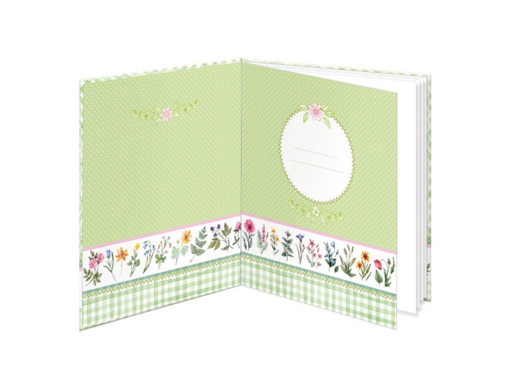 Vnútro má 48 čistých listov a látkovu stuhu (záložku).