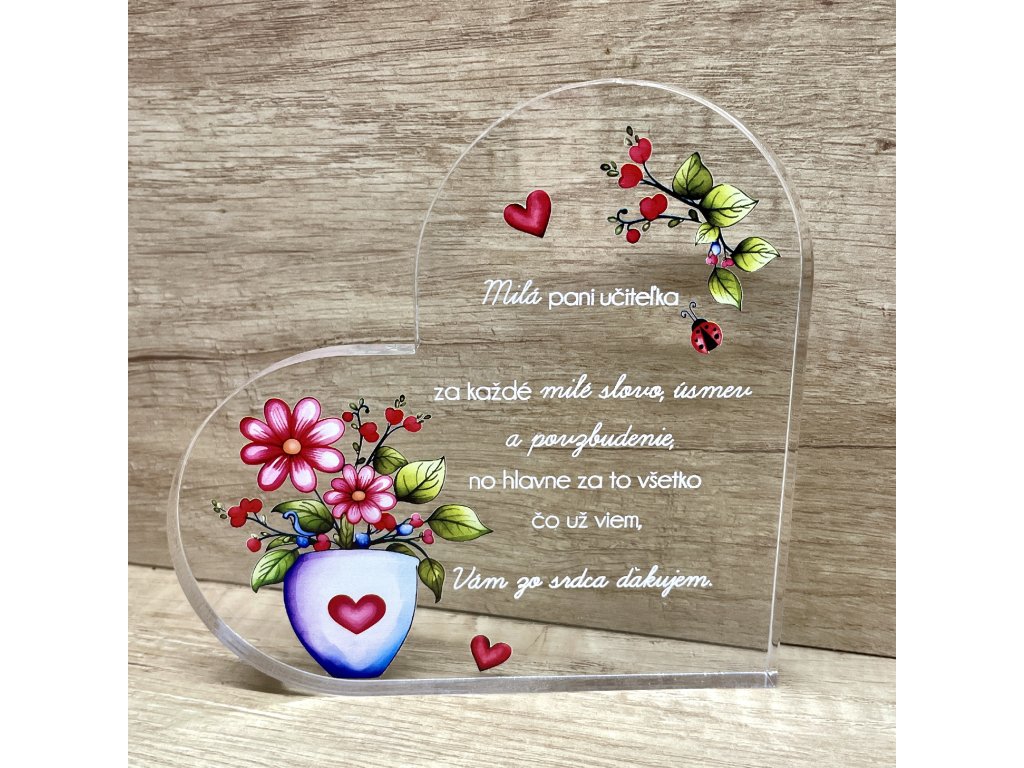 - Elegantný a moderný dizajn - transparentné srdiečka sú jemné, decentné a zároveň veľmi efektné. Hodia sa do každého interiéru a sú univerzálnym darčekom pre každého učiteľa.